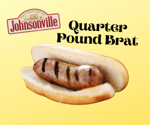 A juicy 1/4 lb Johnsonville Brat steeped in beer, grilled to perfection & topped with your choice of condiments, served on a toasted brat bun. Sauerkraut available on the side.