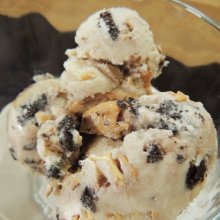 Vanilla custard with coffee flavoring, fudge and Oreo cookie pieces!